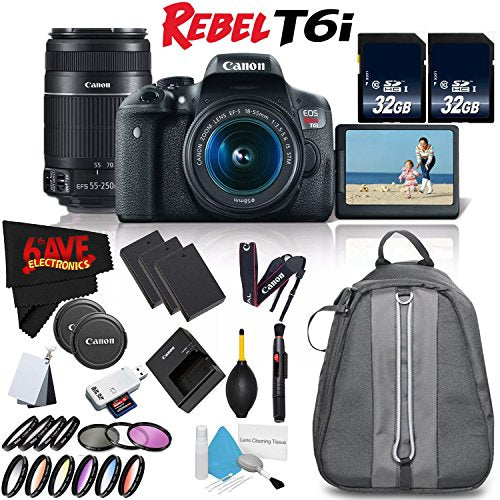 6Ave Canon EOS Rebel T6i DSLR Camera with 18-55mm Lens, 55-250mm - 2 Lens Combo