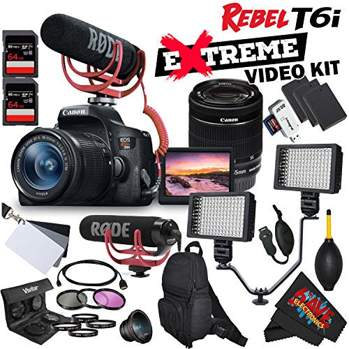 6Ave Canon EOS Rebel T6i DSLR Camera with EF-S 18-55mm f/3.5-5.6 is STM Lens 0591C003 + Rode VideoMic GO + Backpack + Dual LED Video Light Bracket Professional Videographer Bundle