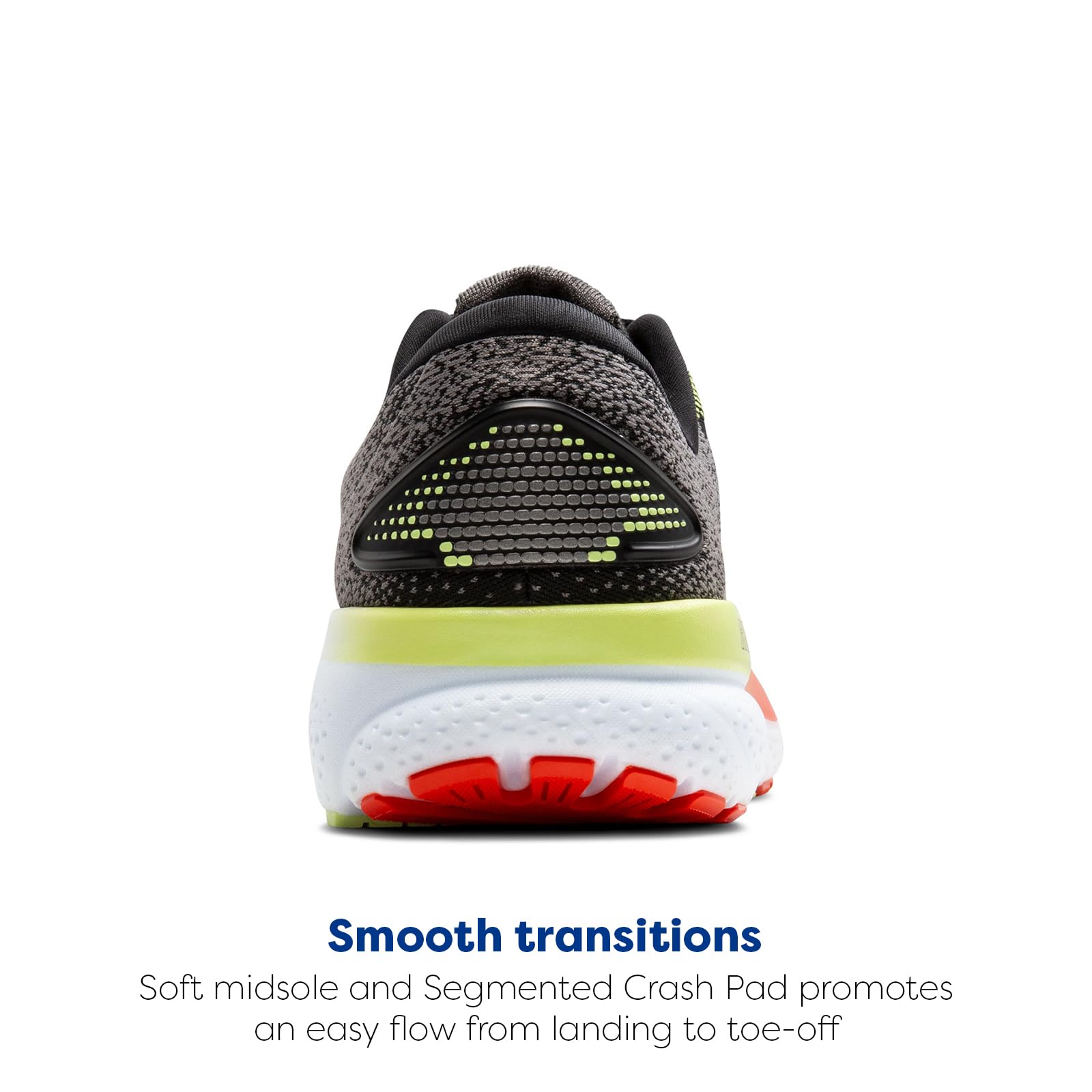 Brooks Men’s Ghost 16 Neutral Running Shoe - Black/Mandarin Red/Green - 12.5 Wide