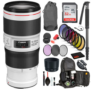 Canon EF 70-200mm f/4L IS II USM Lens (2309C002) with Bundle Includes: 9PC Filter Kit, Sandisk 32GB SD + More