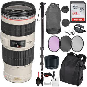 Canon EF 70-200mm f/4L IS USM Lens (1258B002) Essential Bundle Kit for Canon EOS - International Model No Warranty
