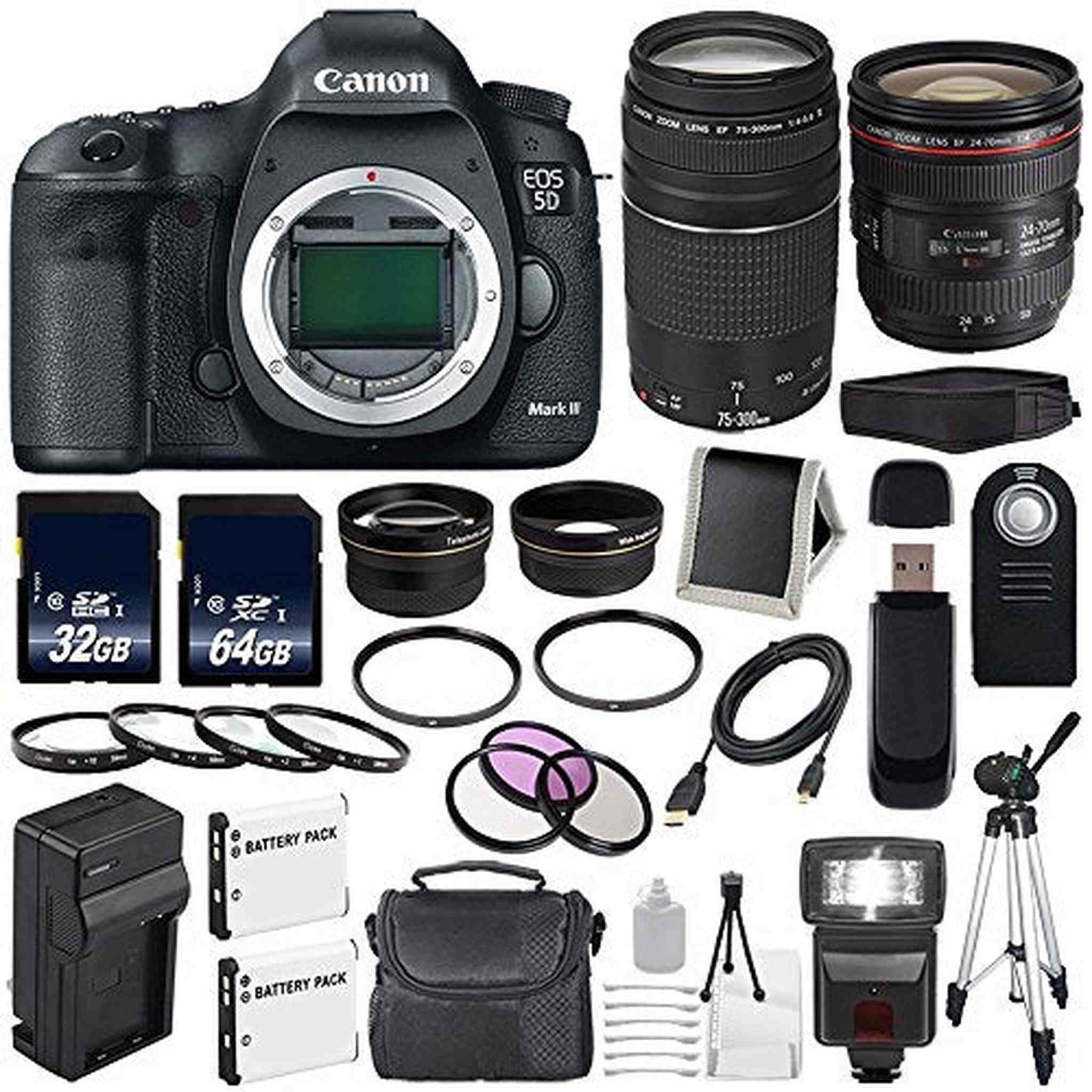 Canon EOD 5D III Digital Camera International Model + Canon EF 24-70mm f/4L is USM Lens + Canon EF 75-300 III Advanced Bundle