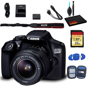Canon EOS 1300D DSLR Camera with EF-S 18-55mm Lens (International Model) Includes Cleaning Kit and 32GB Memory Kit