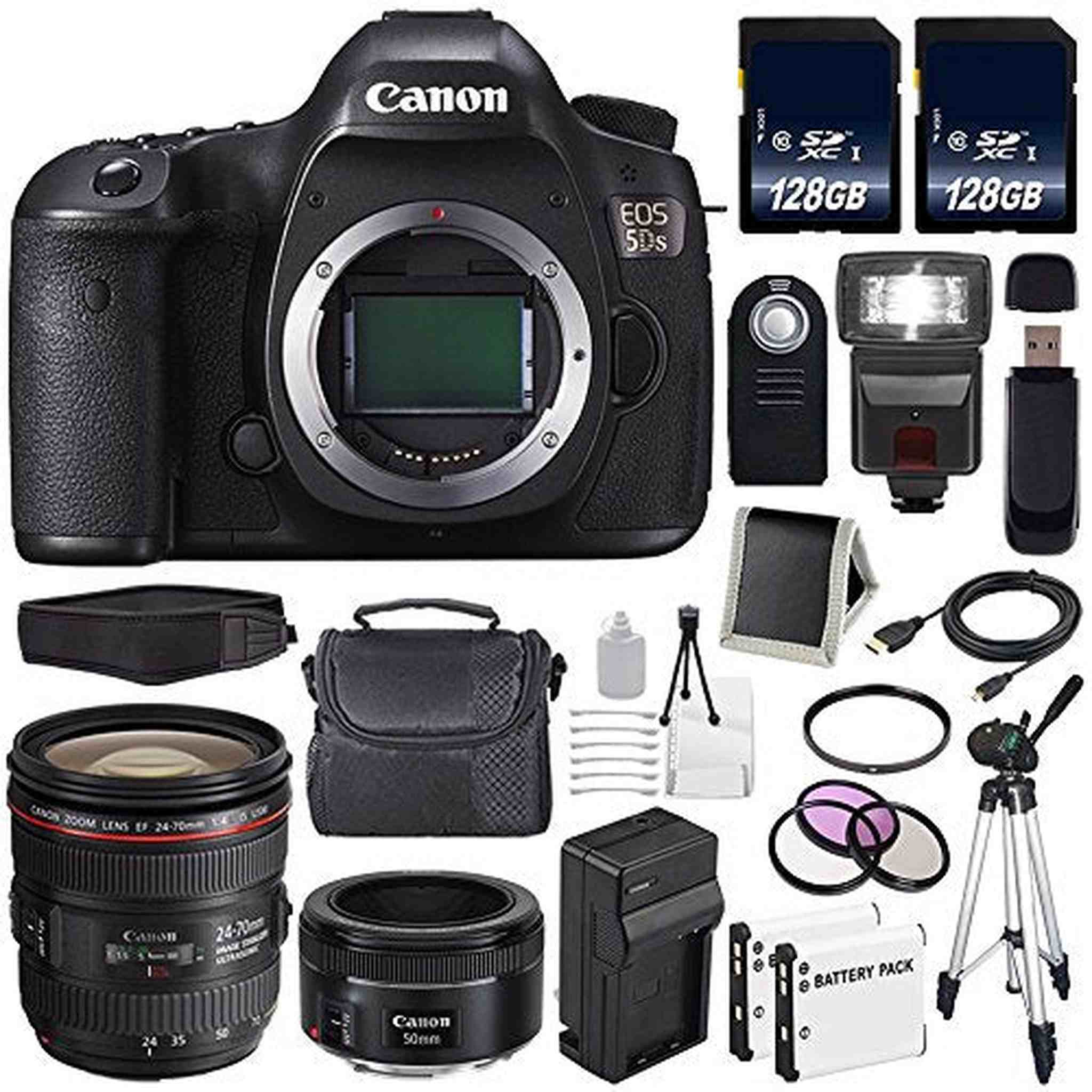 Canon EOS 5DS DSLR Camera (International Model) 0581C002 + Canon EF 24-70mm f/4L is USM Lens + EF 50mm f/1.8 STM Lens Ultimate Bundle