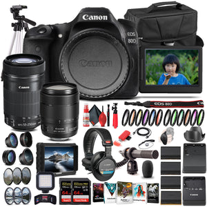 Canon EOS 80D Camera W/ 18-135mm Lens and EF-S 55-250mm Lens - Pro Bundle