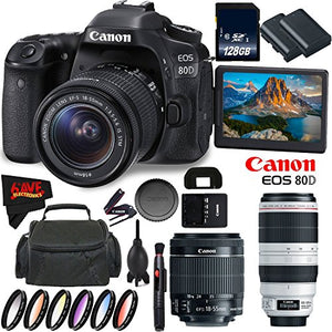 Canon EOS 80D DSLR Camera + 18-55mm Lens + Canon EF 100-400mm f/4.5-5.6L Lens + 128GB Memory Card International Version