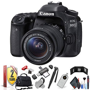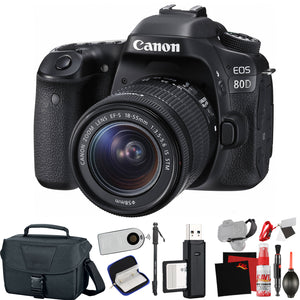 Canon EOS 80D DSLR Camera with 18-55mm Lens Bundle Items Include:1 x Infrared Wireless Remote1 x Handstrap for Camera1 x SD Memory Card Reader (Memory Card Not Included)1 x Professional Cleaning Kit (With Lens Pen)1 x 70" Monopod1 x Medium Sized Carrying Case
