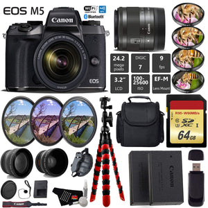 Canon EOS M5 Mirrorless Digital Camera with EF-M 15-45mm IS STM Lens + UV FLD CPL Filter Kit + 4 PC Macro Kit Pro Bundle