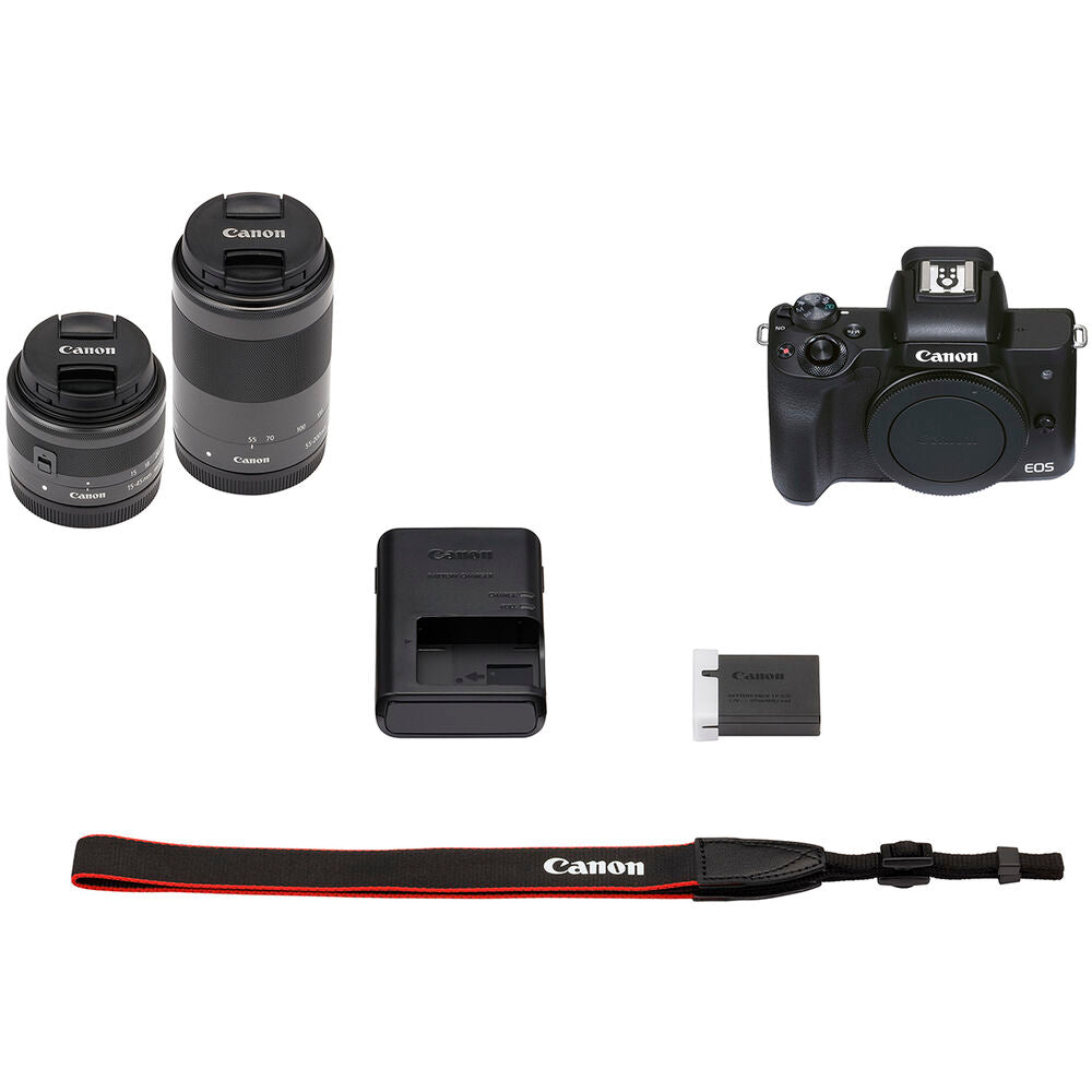 1 x Canon EOS M50 Mark II Mirrorless Camera with 15-45mm and 55-200mm Lenses (Black)