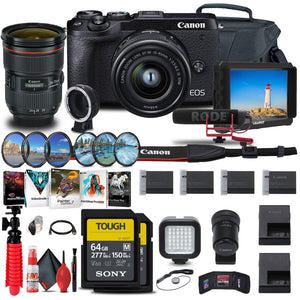 Canon EOS M6 Mark II Mirrorless Camera with 15-45mm Lens and EVF-DC2 Flexible Tripod Bundle