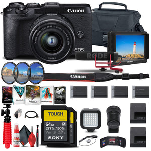 Canon EOS M6 Mark II Mirrorless Camera with 15-45mm Lens and EVF-DC2 Travel Vlogger Bundle