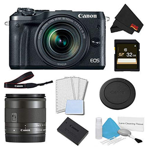 A well-rounded mirrorless camera for both stills and video use, the black EOS M6 from Canon offers apt imaging qualities with a refined, functional physical design. Making use of a 24.2MP APS-C CMOS sensor, both high-resolution stills and Full HD 1080p/60 video can be recorded, while the DIGIC 7 image processor affords a wide expanded sensitivity range from ISO 100-25600, along with quick continuous shooting up to 9 fps. The sensor's design also facilitates Dual Pixel CMOS AF, which uses phase-detection autofocus for quick, accurate, and smooth performance to suit both stills and video use. Additionally, Combination IS 5-axis image stabilization also helps to realize steady, shake-free recording by minimizing the appearance of camera shake. Alongside the imaging attributes, the EOS M6 also incorporates a large 3.0" 1.04m-dot touchscreen LCD for intuitive control, and the screen's design tilts to enable easier shooting from high and low working angles. Additionally, built-in Wi-Fi with NFC is available for quick and convenient pairing with a smartphone or tablet for wireless image sharing, and Bluetooth is also featured for image sharing to and remote camera control from a mobile device.Bundle Items Include:Canon EOS M6 Mirrorless Digital Camera (Black) with EF-M 18-150mm f/3.5-6.3 IS STM Lens (Graphite) - International ModelCanon EF-M 11-22MM f/ 4-5.6 IS STM - International ModelLP-E17 Lithium-Ion Battery PackLC-E17 Charger for LP-E17 Battery PackR-F-4 Camera Cover (Body Cap) for EOS M Mirrorless CameraEM-300DB StrapTerminal Cover32GB UHS-I SDXC Memory Card (Class 10)5 Piece Lens Cleaning KitLCD Screen ProtectorsMicrofiber Cloth
