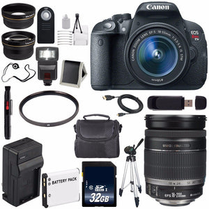 This 6AVE Bundle includes:1- Canon EOS Rebel T5i 18 MP CMOS Digital SLR Camera w/EF-S 18-55mm f/3.5-5.6 Lens Brand New w/ All Supplied Manufacturer Accessories1- Canon EF-S 18-200mm f/3.5-5.6 Standard Zoom Lens Brand New w/ Manufacturer Supplied Accessories1- 32GB SDHC Class 10 Secure Digital High Speed Memory Card1- 58mm 2x Telephoto Lens W/ Pouch and Caps (More Zoom better!)1- 58mm 0.45x Wide Angle Lens w/ Pouch and Caps (Capture That View!) 1- 58mm Ultraviolet UV Filter (Glare Not Your Friend!)1- LP-E8 Lithium Ion Replacement Rechargeable Battery (Not Original Canon)(Don't Miss out on a Memory!)1- External Rapid Quick, Travel Charger w/ Car Charger Attachment (Always Have an Extra Battery on Deck!)1- Padded Carrying Case (Protect Your Investment!)1- Full Size Tripod W/Carry Bag (Keep it Steady!)1- Wireless Universal Shutter Release Remote 1- External Digital Slave SLR Flash (Brighten any Memory with a Flash!)1- 6 Foot High Performance Mini HDMI Cable 1- Lens Pen Cleaner1- USB SDHC Card Reader1- Memory Card Wallet (Keep your memories safe!)1- Lens Cap Keeper (Dont Lose your Caps!) 1- Lens Cleaning Solution1- Blower Brush1- Microfiber Cloth1- Lens Tissue Paper1- 5pc Cotton Swabs