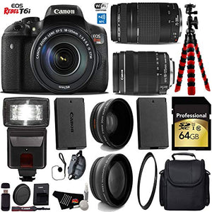 Canon EOS Rebel T6i DSLR Camera 18-135mm is STM Lens & 75-300mm III Lens + Flash + UV FLD CPL Filter Kit + Wide Angle &