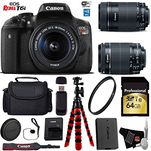 Canon EOS Rebel T6i DSLR Camera 18-55mm is STM Lens & 55-250mm is STM Lens + Flexible Tripod + UV Protection Filter + Pr