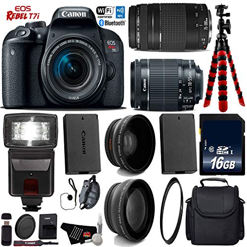 Canon EOS Rebel T7i DSLR Camera + 18-55mm Lens & 75-300mm Lens 16GB Bundle