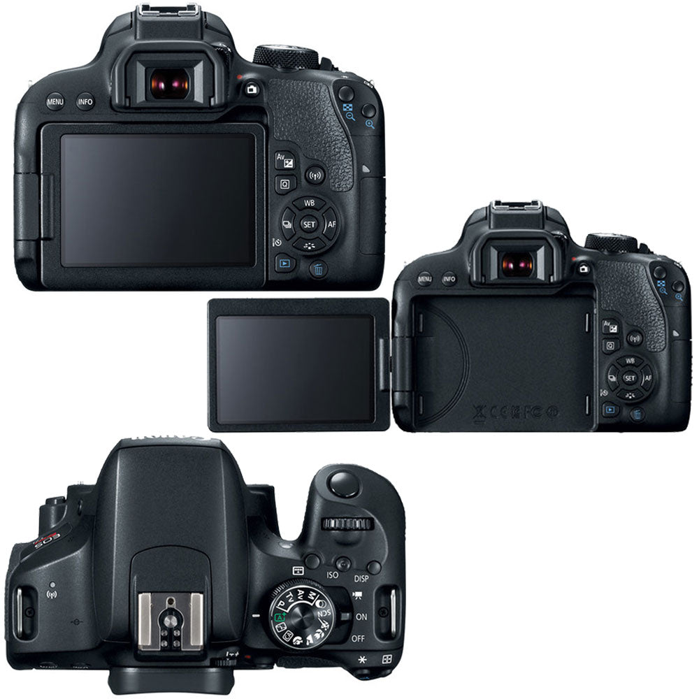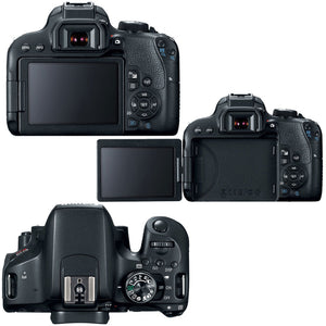Packing a versatile featureset in a sleek and portable body, the EOS Rebel T7i DSLR from Canon offers advanced imaging capabilities along with a convenient range of controls and connectivity. Utilizing a 24.2MP APSC CMOS sensor and DIGIC 7 image processor, the Rebel T7i is able to capture highresolution stills and video with an expanded sensitivity range of ISO 10051200 to suit working in a wide variety of lighting conditions. The sensor and processor combination also avails 6 fps continuous shooting for working with moving subjects.24.2MP APSC CMOS SensorDIGIC 7 Image Processor3.0" 1.04mDot VariAngle TouchscreenFull HD 1080p Video Recording at 60 fpsThis Listing includes the following:1855mm75300mm58mm 3pc Filter KitMacro KitWide Angle & Telephoto Lens32GB Memory CardGadget BagLens Cap HolderRemote ControlCard ReaderWalletSlave FlashCleaning KitLarge TripodSmall Tripod