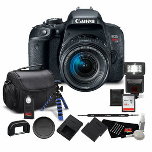 - This 6AVE Bundle includes Canon EOS Rebel T7i Digital SLR Camera with 18-55mm Lens , 64GB SD CLASS 10 MEMORY Card, Memory Card Wallet, 1- Spare Battery, 3 Piece Filter Set (UV, CPL, FL), Soft Carrying Case, Full Size Tripod, Digital Slave Flash, 58mm 2x Telephoto Lens, 58mm 0.45x Wide Angle Lens, 3 Piece Filter Set (UV, CPL, FL), Wireless Remote Shutter Release, 5 piece Lens Cleaning Kit, Microfiber Cloth