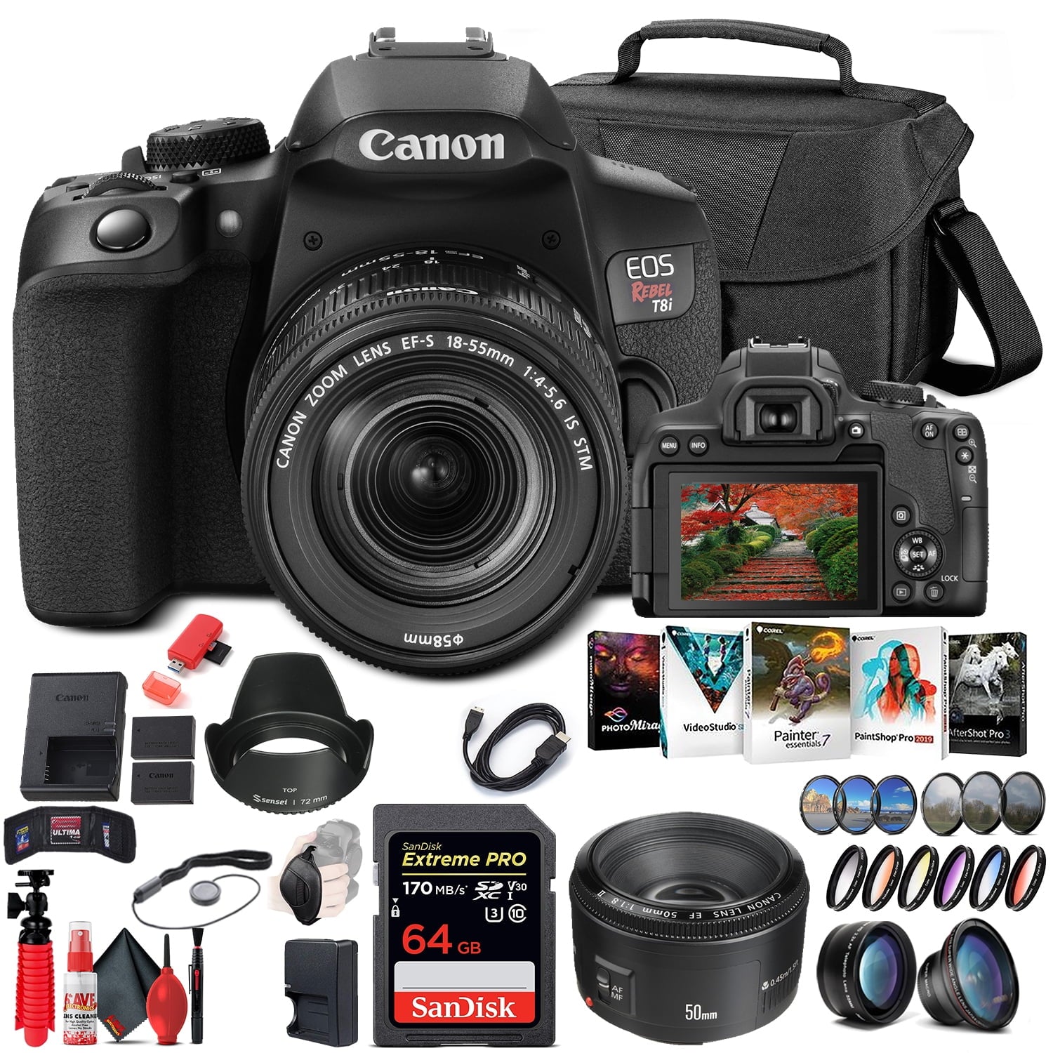 Canon EOS Rebel T8i DSLR Camera with 18-55mm Lens 3924C002 + EF 50mm Lens Graphic Bundle