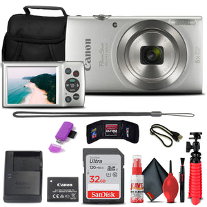 Canon PowerShot ELPH 180 Digital Camera (Silver) + 32GB Card + More Bundle