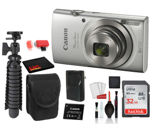 Canon PowerShot ELPH 180 Digital Camera (Silver) with SanDisk 32gb SD card + Camera Case + Tripod + MORE