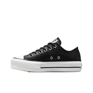 This platform sports shoe is known as the CHUCK TAYLOR ALL STAR LIFT CLEAN -OX and was created by the Converse brand. Its black color and leather upper with textile lining allow it to adapt to any look. CONVERSE in color Black and leather, comfortable sneakers with platform, with a touch of fashion for your casual looks during your daily walks.
