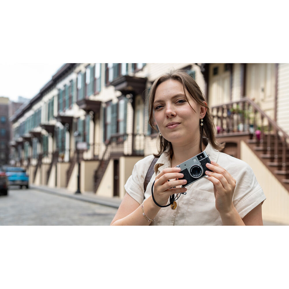 The FUJIFILM X half reimagines the charm of half-frame film photography in a compact digital form. Its vertical 18MP 1" sensor delivers 3:4 stills and video, ideal for storytelling and social-ready vertical content. The fixed 10.8mm f/2.8 lens (32mm equivalent) offers a wide, everyday field of view, supported by manual aperture and focus rings. Film Camera Mode limits you to a single Film Simulation and a roll of 36, 54, or 72 images, viewable only after digital “development,” encouraging intentional shooting. The secondary sub-LCD mimics a film window, letting you switch between 13 Film Simulations and apply 26 filters, including Light Leak and Halation. With the 2-in-1 mode, two sequential frames are combined into a diptych. A Frame Advance Lever, optical window viewfinder, and no live preview complete the film-style experience. USB-C connectivity, built-in mic, wireless sharing, and app integration make the X half suited for creators who value physical process as much as digital output.