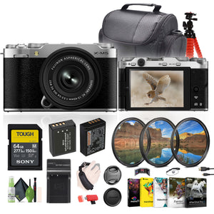 Fujifilm X-M5 Mirrorless Camera + XC 15-45mm f/3.5-5.6 OIS PZ Lens Bundle- Silver