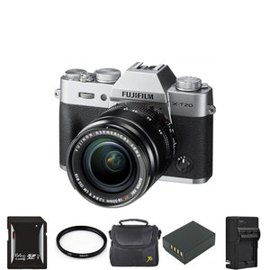 Fujifilm X-T20 Digital Camera - Silver w/18-55mm Lens + 2 Batteries, 64GB & More