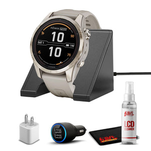 Garmin fenix 7S Pro Solar, Sapphire, Soft Gold Steel Light Sand with Accessories