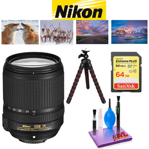 Developed for Nikon's range of high-resolution DX-format cameras, the AF-S DX NIKKOR 18-140mm f/3.5-5.6G ED VR is a versatile 27-210mm-equivalent all-in-one zoom covering a wide-angle to mid-telephoto range. Helping to achieve impressive image quality, the optical design employs one aspherical element and one extra-low dispersion element, which both help to limit spherical and chromatic aberrations in order to realize great sharpness and color accuracy. Individual elements also feature a Super Integrated Coating, which cuts flare and ghosting to increase contrast when working in harsh lighting conditions. Benefitting handheld shooting, Vibration Reduction minimizes the appearance of camera shake by up to four stops in order to produce sharper imagery. Additionally, a Silent Wave Motor affords fast, near-silent autofocus performance and full-time manual focus override.Manufacturer Included Items:Nikon AF-S DX NIKKOR 18-140mm f/3.5-5.6G ED VR Lens67mm Snap-On Lens CapLF-4 Rear Lens CapBundle Items Include:1 x NIKON 18-140MM F/3.5-5.6G ED AF-S DX VR LENS 1 x Sandisk 64GB EXTREME SDXCUHS-I 90/60MB/S1 x Backpack with Padded Compartments for Cameras1 x Tabletop Tripod1 x Table Top Tripod, Lens Cleaning Kit, LCD Protector1 x High Quality Dust Blower1 x Lens Pen Cleaner