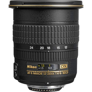 Nikon AF-S DX Zoom-NIKKOR 12-24mm f/4G IF-ED Lens OverviewPairing an ultra-wide range with a constant f/4 maximum aperture, the Nikon AF-S DX Zoom-NIKKOR 12-24mm f/4G IF-ED is a versatile 18-36mm-equivalent DX-format zoom suitable for landscape, architectural, and interior subjects. Three aspherical elements and two extra-low dispersion elements are featured in the optical design, which help to reduce color fringing and chromatic aberrations in order to produce high clarity and color accuracy. A Super Integrated Coating also controls flare and ghosting to increase overall contrast and color rendering when working in backlit and harsh lighting conditions. Additionally, a Silent Wave Motor provides fast and quiet autofocus performance, along with full-time manual focus override, to benefit both stills and video applications.What's In The BoxNikon AF-S DX Zoom-NIKKOR 12-24mm f/4G IF-ED Lens77mm Snap-On Lens CapLF-4 Rear Lens CapHB-23 Bayonet Lens HoodExtra Bundle Items:Lens Pen Cleaner (Has Felt Tip and Brush Tip - Must Have!)Dust BlowerLens Cleaning SolutionLens Cap KeeperSoft Lens Pouch2 Year Extended Warranty Included (Replaces Manufacturer Warranty)