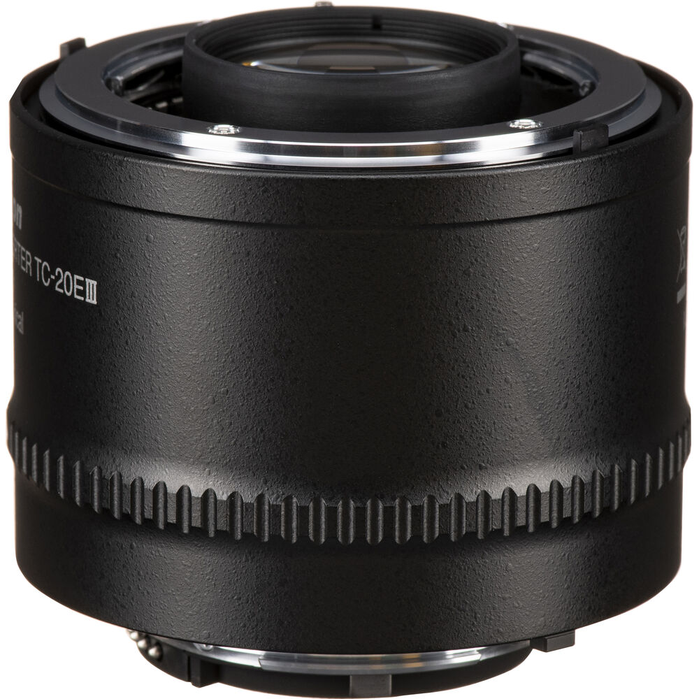 Unlock the extended potential of compatible lenses with the Nikon AF-S Teleconverter TC-20E III, boasting a remarkable 2x magnification for use with F-mount cameras. This teleconverter facilitates a doubling of the lens reach while preserving full electronic communication between the lens and camera. This ensures the continuity of essential features such as metering, autofocus, and VR capabilities. The construction of the teleconverter comprises seven elements arranged in five groups, enhanced by Nikon's Integrated Coating (IC) for improved color rendition and reduced flare. With the inclusion of an aspherical lens element, lens aberrations are virtually eliminated, and the teleconverter is designed to be dust and water-resistant for added durability. Equipped with advanced optics, the AF-S Teleconverter TC-20E III offers photographers an extended focal range without compromising on image quality. The seamless integration of electronic communication ensures a seamless shooting experience, allowing users to maintain precise metering, autofocus, and VR capabilities even with the increased magnification. The aspherical lens element plays a crucial role in delivering distortion-free images, while the dust and water-resistant design adds a layer of reliability, making this teleconverter a versatile and durable tool for photographers exploring telephoto possibilities. Manufacturer Included Items: Nikon AF-S Teleconverter TC-20E III