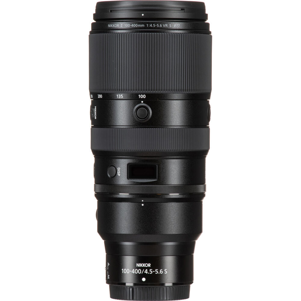 Offering super-telephoto reach in a portable design, the NIKKOR Z 100-400mm f/4.5-5.6 VR S, from Nikon, is a versatile zoom well-suited for sports and wildlife applications. Covering a broad telephoto range, the lens manages to remain relatively lightweight and compact, making it ideal for travel as well, and it incorporates Inner Balance technology that maintains stability when tracking moving subjects and shooting atop a gimbal head. Manufacturer Included Items: Nikon NIKKOR Z 100-400mm f/4.5-5.6 VR S Lens