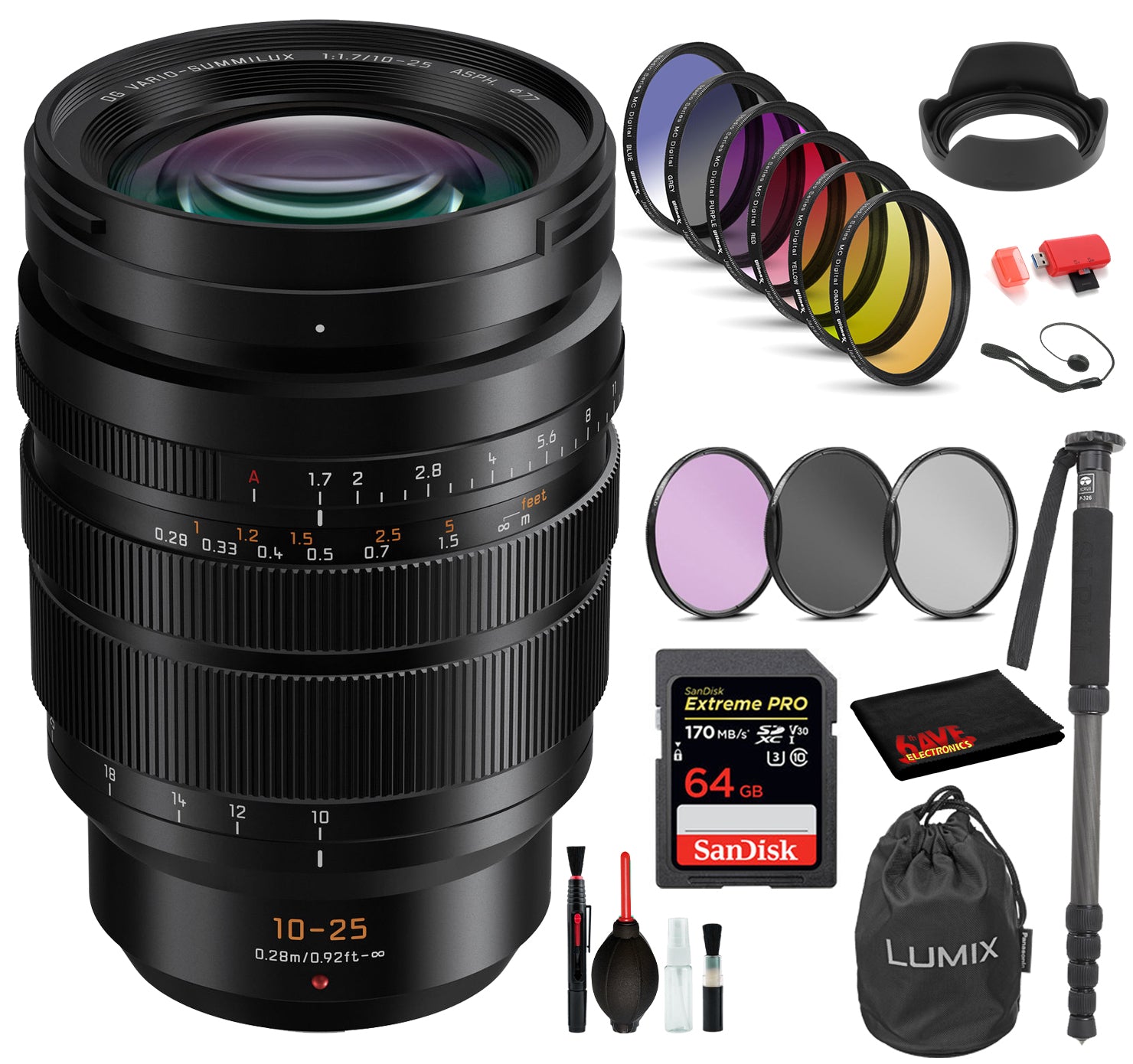 Panasonic Leica DG Vario-Summilux 10-25mm f/1.7 ASPH. Lens with: Sandisk Extreme Pro 64GB SD Card, 9PC Filter Kit + More