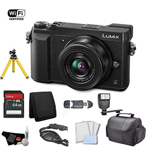 An all-around Micro Four Thirds camera designed for photographers and videographers, the Lumix DMC-GX85 from Panasonic features a compact build and intuitive layout, along with a feature-set to suit a multimedia lifestyle. Utilizing a 16MP Live MOS sensor, which lacks an optical low-pass filter for increased sharpness, the GX85 is capable of shooting continuously at up to 10 fps with single-shot autofocus, or 6 fps with continuous autofocus, as well as up to 40 fps when using an electronic shutter function. UHD 4K video recording is also supported in 30 and 24 fps frame rates, as well as Full HD 1080p, and the 4K recording abilities also permit shooting 8MP stills at a 30 fps rate. Included with the camera body is the versatile Lumix G Vario 12-32mm f/3.5-5.6 ASPH. lens, which provides a 24-64mm equivalent focal length range. The lens is characterized by its sleek profile that pairs well with the camera body, and its optical design incorporates three aspherical elements and one extra-low dispersion element to control a variety of aberrations and distortions. Manufacturer Included Items: Panasonic Lumix DMC-GX85 Mirrorless Micro Four Thirds Digital Camera with 12-32mm Lens Lumix G Vario 12-32mm f/3.5-5.6 ASPH. Lens Rechargeable Lithium-Ion Battery AC Adapter USB Connection Cable Shoulder Strap Hot Shoe Cover Limited 1-Year Warranty Items Included in Bundle: 64GB SDHC Memory Card Memory Card Wallet USB SDHC Card Reader LCD Screen Protectors Soft Padded Carrying Case Pro Hand Camera Grip 12 Inch Flexible Tripod Universal External Digital Slave SLR Flash (Brighten any Memory with a Flash!) Deluxe 5 Piece Lens Cleaning Kit; Microfiber Cloth Lens Cleaning Fluid 5pc Cotton Swabs Blower Brush Lens Tissue Paper