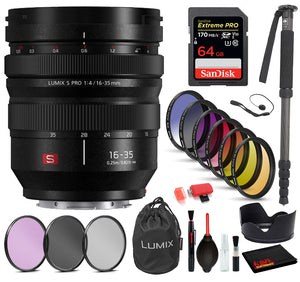Panasonic Lumix S PRO 16-35mm f/4 Lens with: Sandisk Extreme Pro 64GB SD Card, 9PC Filter Kit + More