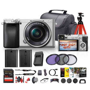 Sony a6400 Mirrorless Camera with 16-50mm f/3.5-5.6 II Lens (Silver) - Bundle