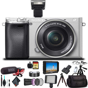 Sony Alpha a6300 Mirrorless Camera W/ 16-50mm Lens ILCE-6300L/S With Bag, Lens Filters, Tripod, 2x Extra Batteries, Rode Mic, Light, External HD Monitor, 2x 64GB Cards, Sling Soft Bag