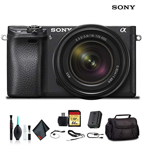 Sony Alpha a6300 Mirrorless Camera with 18-135mm Lens Black ILCE-6300M/B With Soft Bag, 64GB Memory Card, Card Reader , Plus Essential Accessories