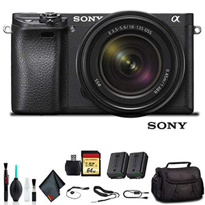 Sony Alpha a6500 Mirrorless Camera with 18-135mm Lens ILCE-6500M/B With Soft Bag, Additional Battery, 64GB Memory Card, Card Reader , Plus Essential Accessories